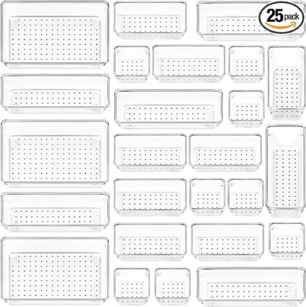 Remember, a tidy space is a happy space. Invest in your well-being and elevate your organization game with the Vtopmart 25 PCS Clear Plastic Drawer Organizers Set. Your drawers will thank you!